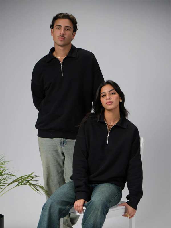 Introducing our new quarter zip sweaters – a blend of luxury and comfort. Immerse yourself in the soft, heavy fabric that defines coziness and quality. The metallic zippers add a touch of sophistication, while the perfect fit ensures style meets comfort seamlessly.
