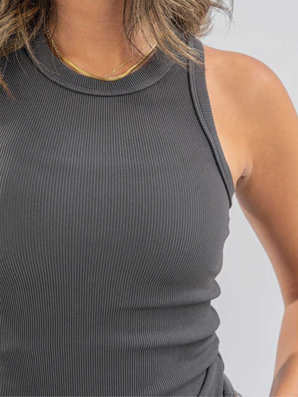 Cut Sleeve Basic Top – Grey
