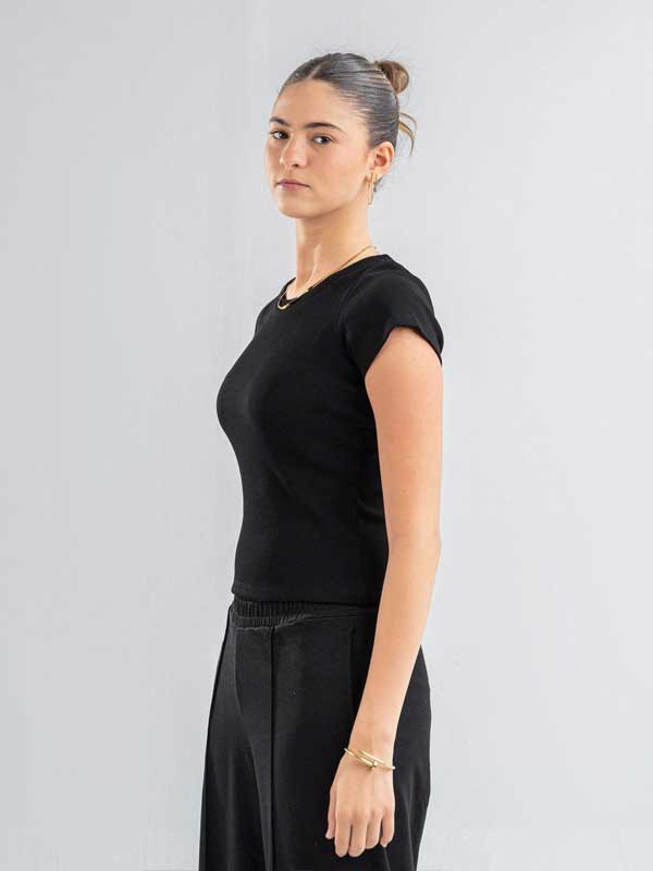 Half-Sleeve Basic Top – Black