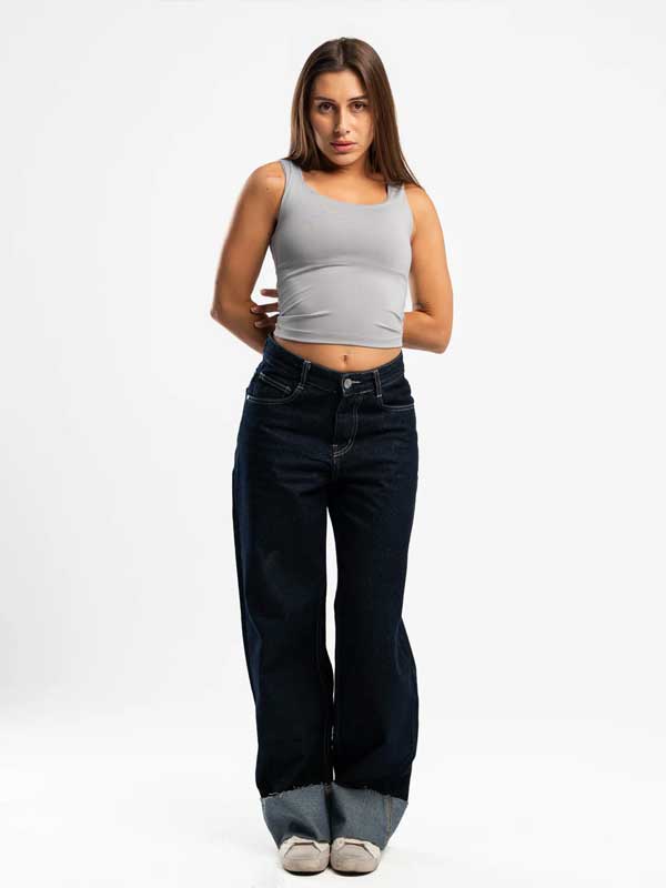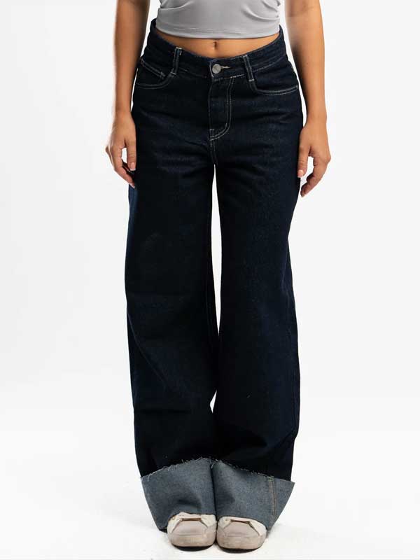 Navy Folded Jeans