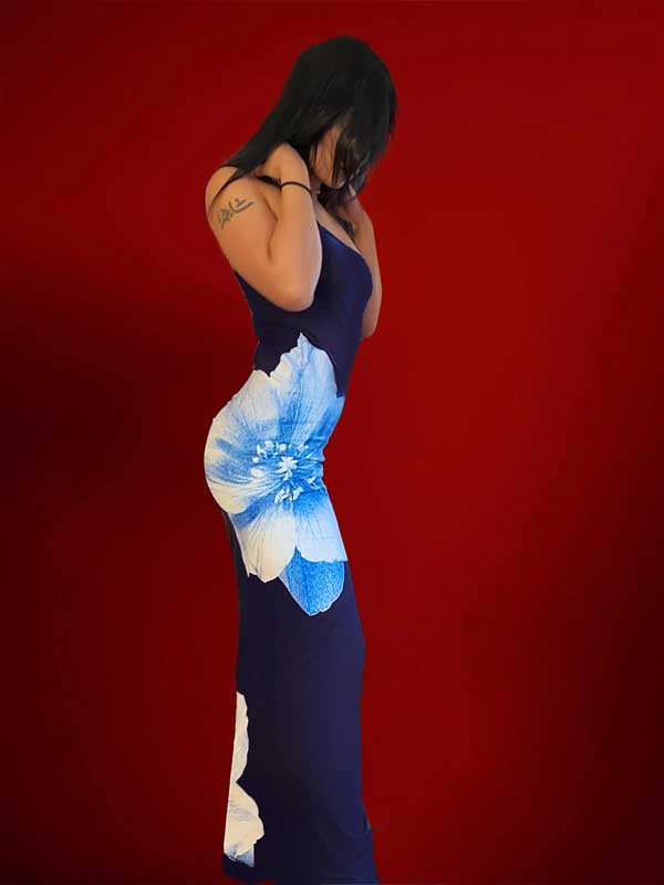 Navy Straps Tropical Dress