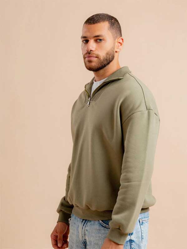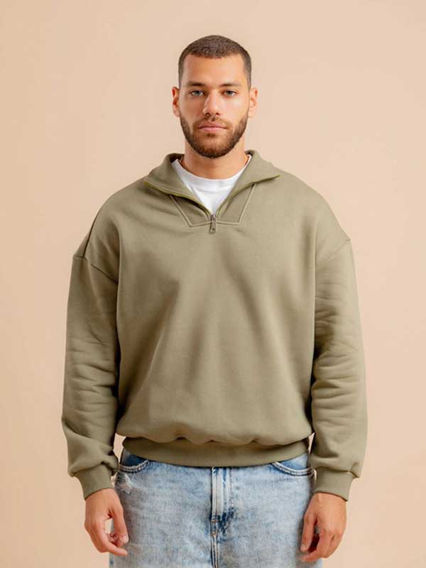 A modern and trendy unisex sweatshirt with a quarter zip, oversized fit and classic design. Perfect for any occasion.