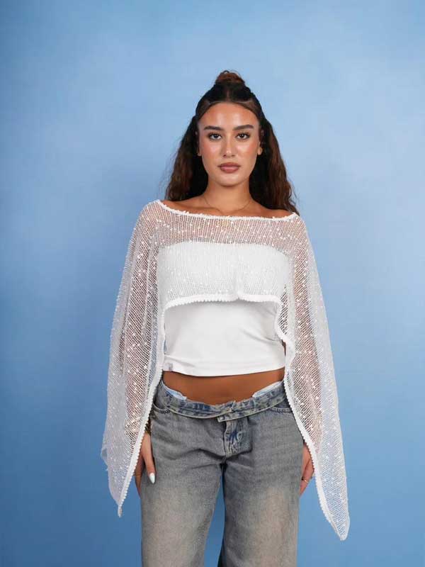 White Sheer Poncho Top | Lightweight Statement Layer Make an entrance with this breezy and bold White Sheer Poncho Top…